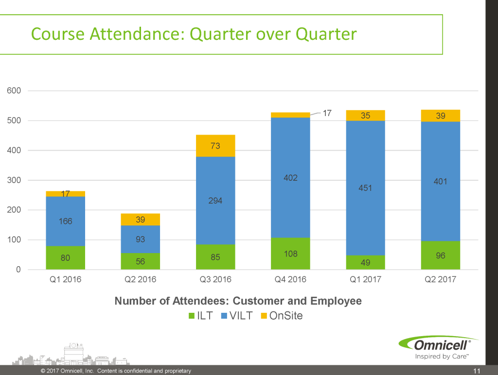 Growth in Facilitation: Attendance increased to 536 learners in Q2 2017 (up from 452 in Q1), with facilitation hours reaching 1,300 hours—a 24% increase quarter-over-quarter. This growth was achieved while maintaining the 40% facilitation goal and strategically balancing instructor time across facilitation, course development, and customer support.